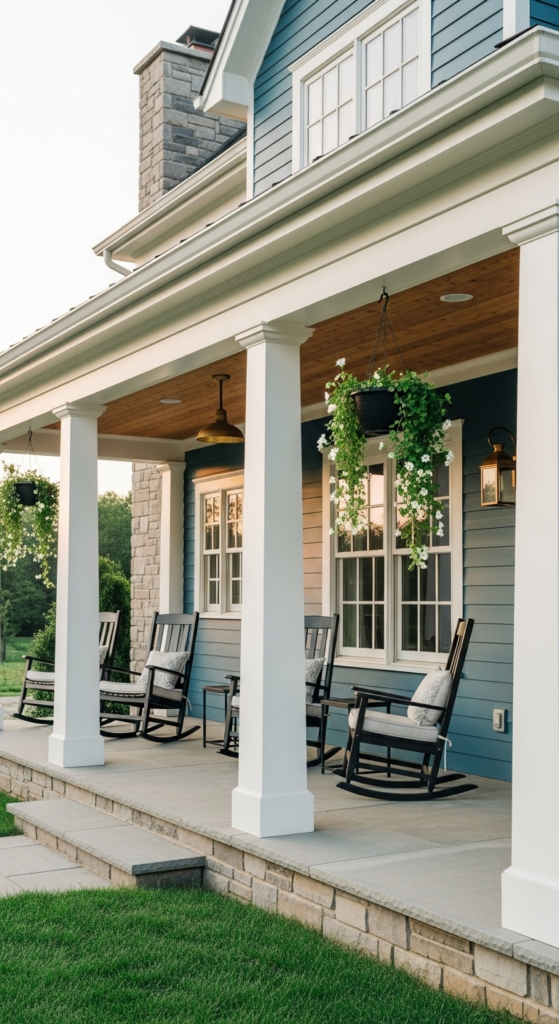 5. Blue-Grey with Warm Wood Porch