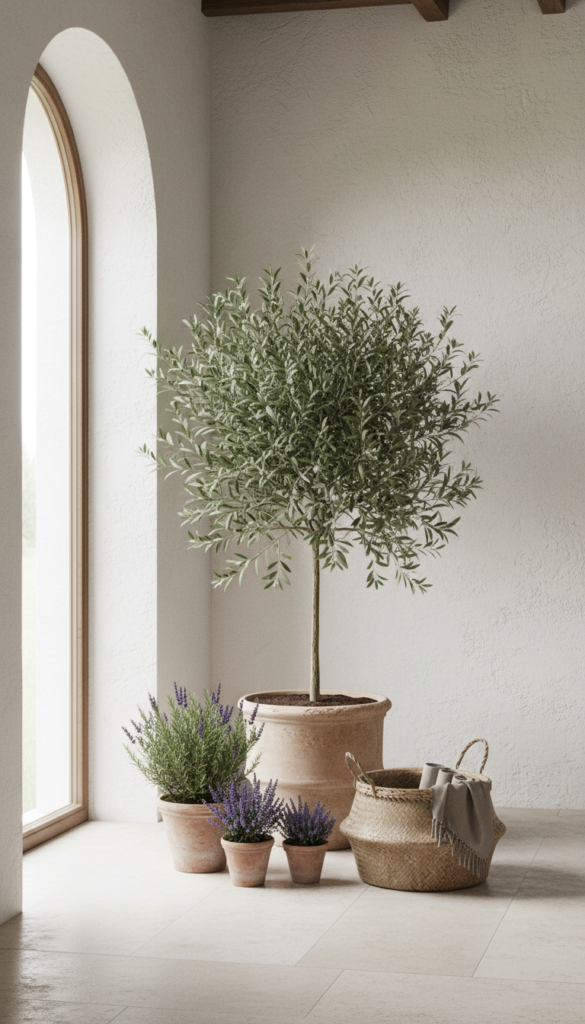 14. Potted Olive Trees and Fresh Herbs Indoors
