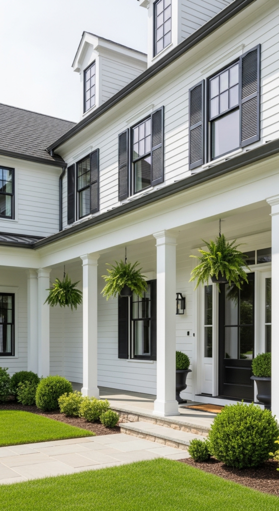 1. Classic Bright White with Black Shutters