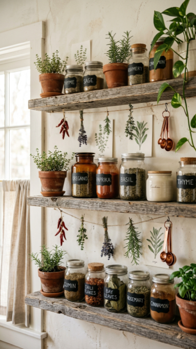 15. The Boho Farmhouse Spice Wall