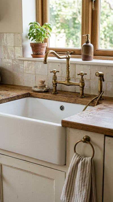 9. The Farmhouse Sink With Brass Fixtures