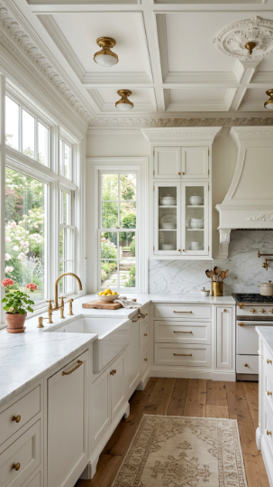 13. White Kitchen with Victorian Crown Molding