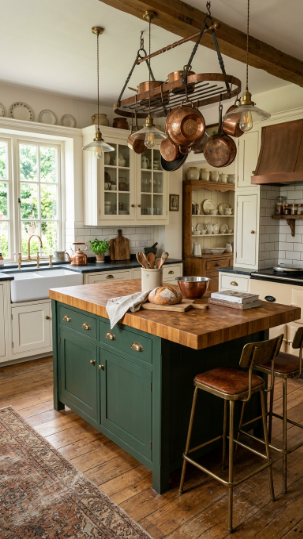 15. Victorian Kitchen with Butcher Block Island