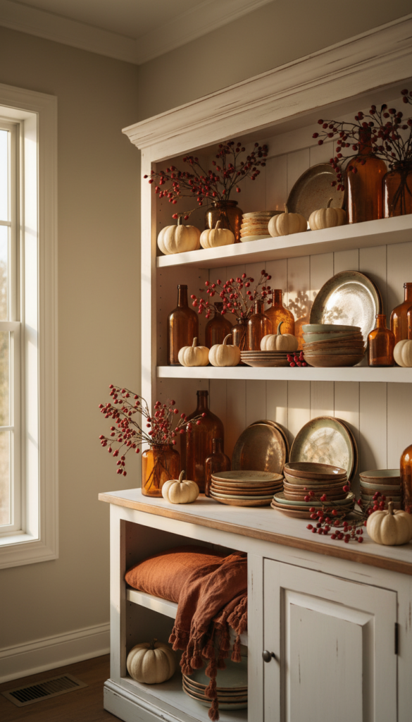 A farmhouse hutch that changes with the seasons feels alive — like the room itself is breathing and evolving alongside the year.