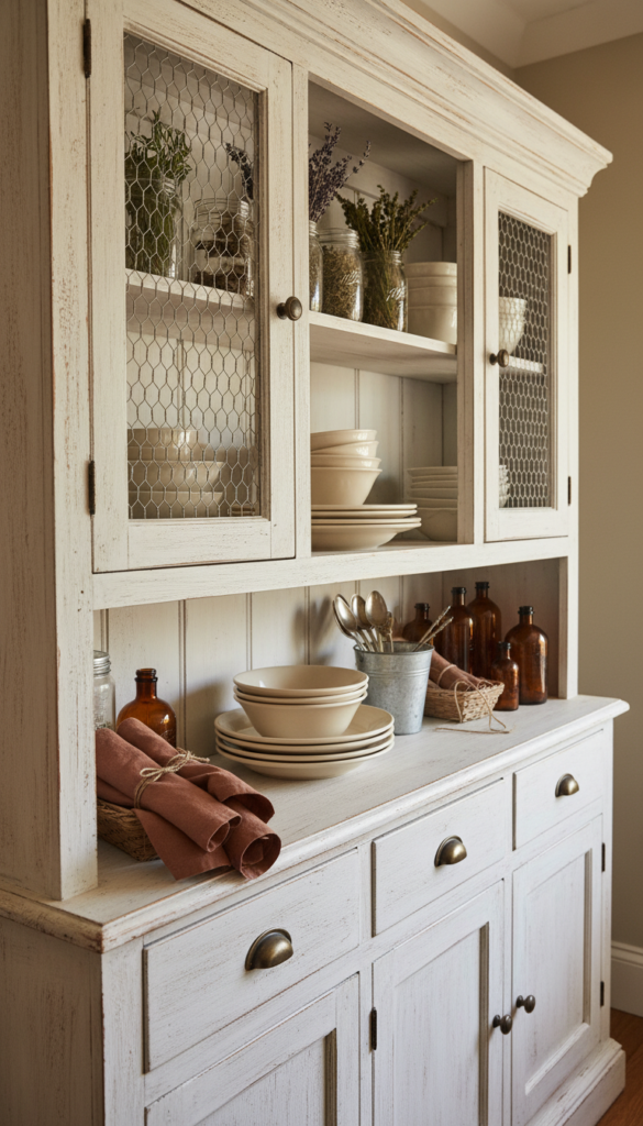 20. The Farmhouse Hutch with a Bread and Grain Display