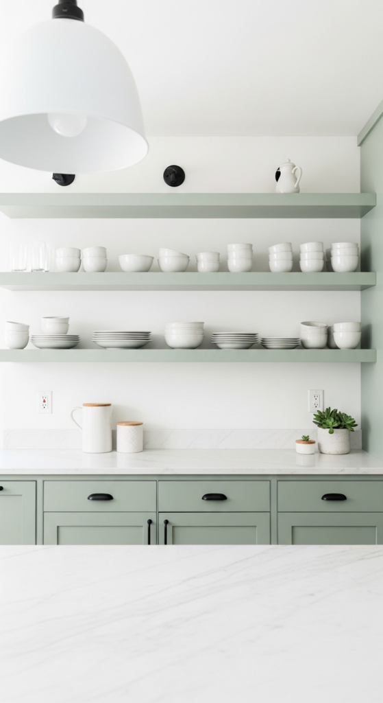 10. Sage Open Shelving Mixed with Closed Cabinets