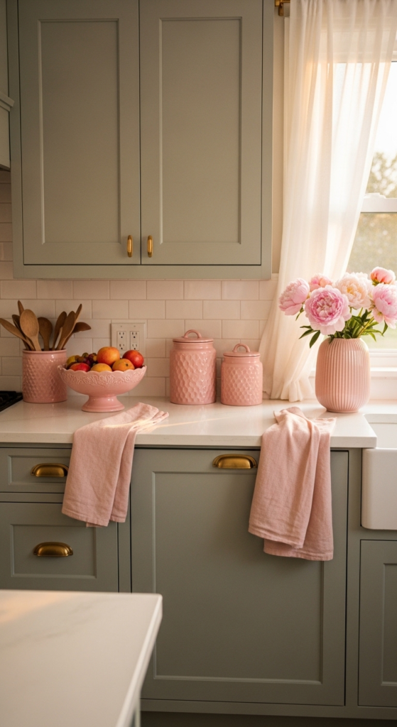 21. Sage Cabinets Paired with Dusty Pink Accents