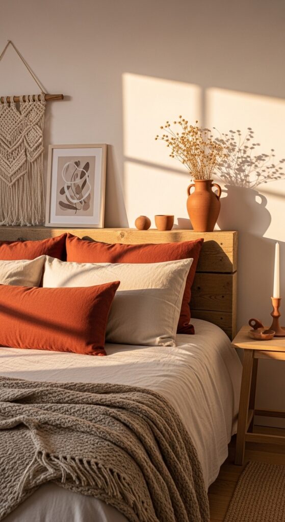 15. Boho Farmhouse Bedroom Ideas Get Better With Clay and Rust Accents