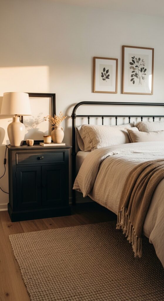 💡 Quick Win: Paint one thrifted nightstand in a warm charcoal and the whole room will feel more deliberate.