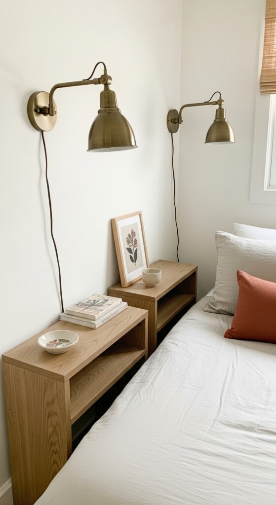 💡 Quick Win: Swap one table lamp for a plug-in sconce and you gain usable nightstand space the same day.