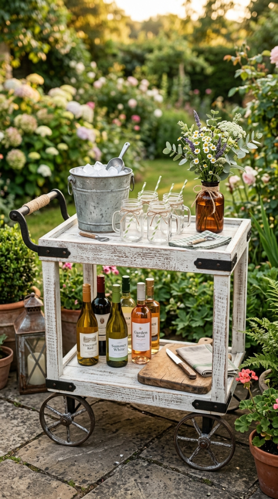 14. Farmhouse Outdoor Bar Cart Styling Corner