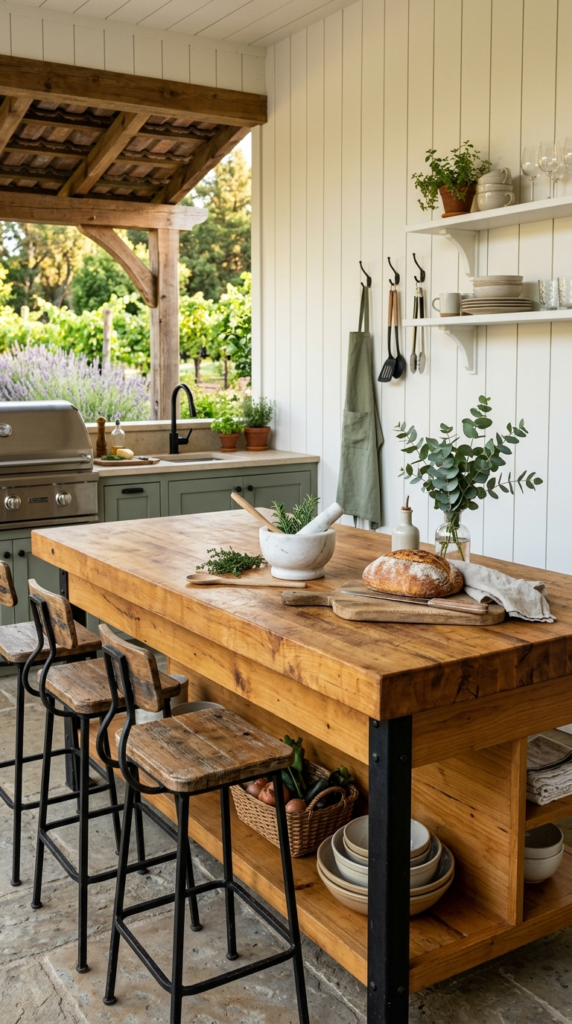 18. Farmhouse Outdoor Kitchen with Butcher Block Island