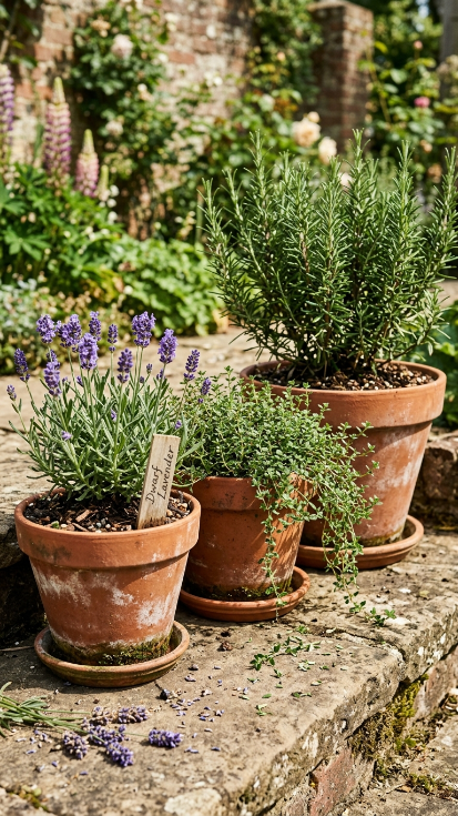 💡 New terracotta pots look convincingly aged after a single week of outdoor exposure in damp conditions — skip the artificial weathering sprays.