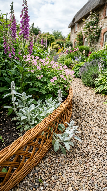 Vibe sentence: Woven willow border edging brings a thousand years of cottage garden craft to a modern outdoor space — it’s the detail that makes a border look truly finished.