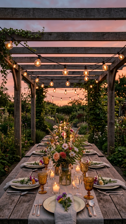 Vibe sentence: Edison string lights looped over a garden dining table at dusk are the single most transformative rustic garden decor investment — nothing else changes the atmosphere of outdoor entertaining so completely.