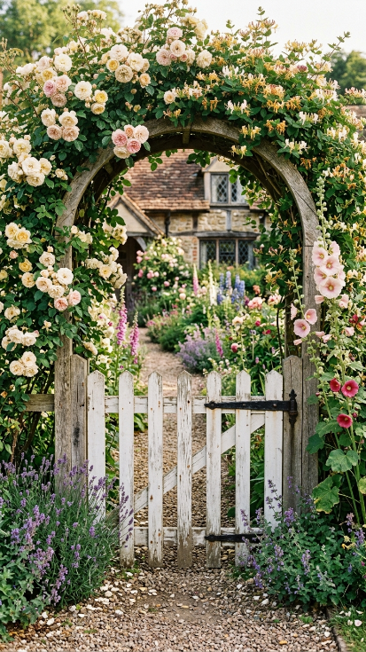 Vibe sentence: A picket gate framed by a flower-draped arch is the rustic garden’s most universally beloved entrance — it promises something wonderful beyond, and almost always delivers.