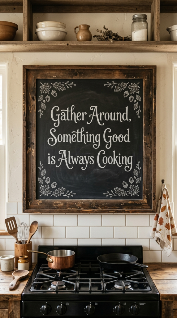 9. Chalkboard Sign With Fall Quote Above the Stove