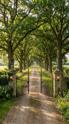 9. The Grand Tree-Lined Driveway Gate