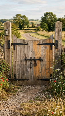 A great farmhouse gate is more than a boundary. It’s a welcome. It’s character made visible in wood, iron, stone and greenery. Whether it’s a grand double gate flanked by stone pillars draped in climbing roses, or a simple weathered wooden post with a hand-painted sign swinging gently in the breeze, the right entrance feels like the property itself is reaching out and saying come on in.