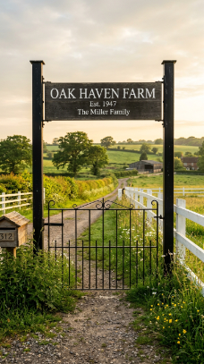 5. The Hand-Painted Farm Sign Gate