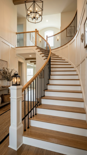 Your staircase is the first thing guests truly notice — and in a farmhouse home, it has the power to set the entire tone. Whether it’s a grand open riser design or a cozy painted wood step makeover, the right details make all the difference.