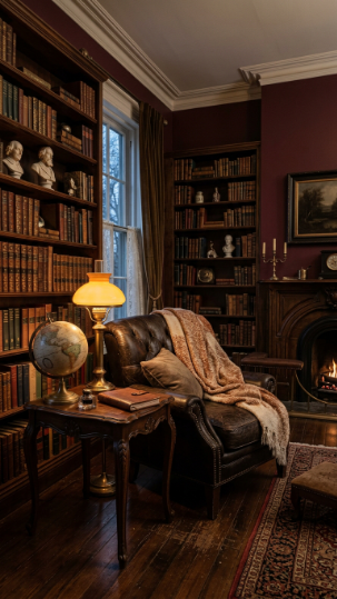 3. Burgundy Library Walls