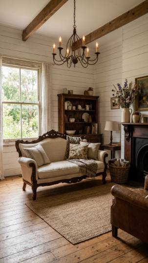 Some rooms stop you in your tracks — and Victorian farmhouse living rooms have that exact effect. They’re the rare blend of ornate and unpretentious, where carved wood meets worn linen and candlelight dances off antique mirrors.