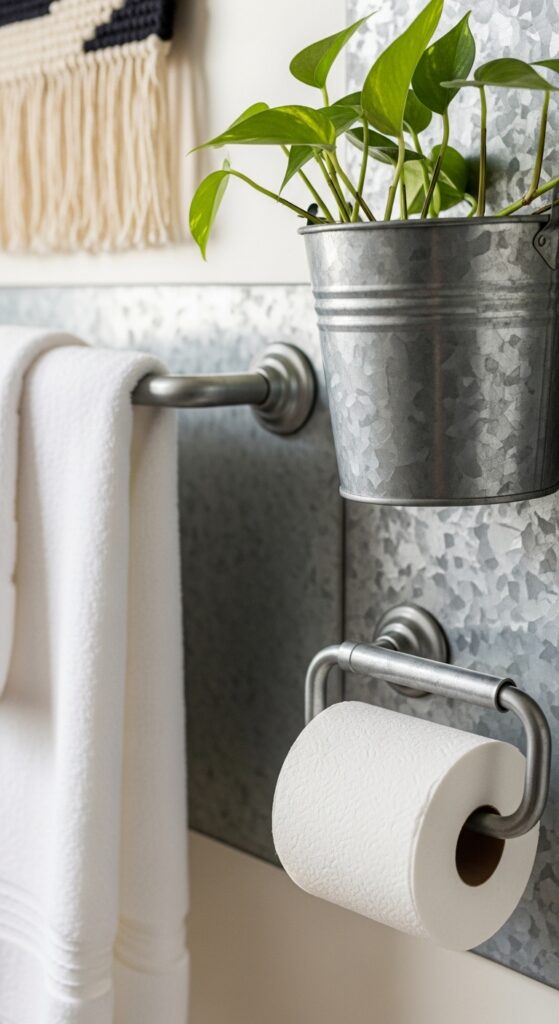 How to get it: Source galvanized accessories as a coordinated set from Rejuvenation’s “Industrial” line or from Walmart’s Better Homes & Gardens farmhouse hardware range ($8–22/piece). Don’t mix galvanized steel with chrome — the cool, reflective shine of chrome undermines galvanized’s matte warmth. Instead, stay within the matte metal family: galvanized, oil-rubbed bronze, and aged brass all live together harmoniously.