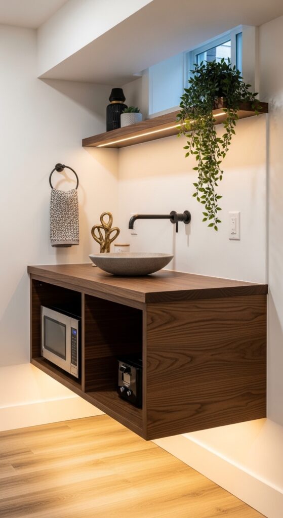 Vibe sentence: This is the kitchenette that makes guests stop and ask if you hired a designer.