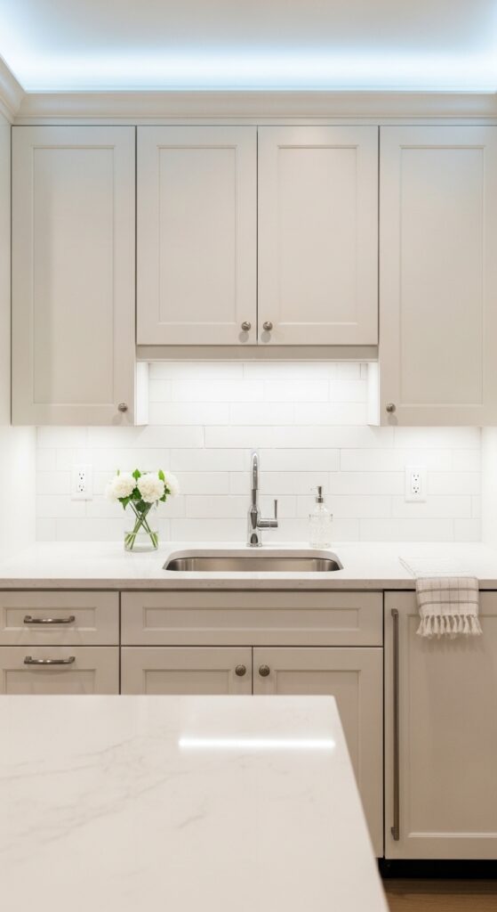 💡 Touch-to-open cabinet hardware (push-to-open clips) runs $2–$5 per door and completely transforms the look of IKEA or stock cabinets.