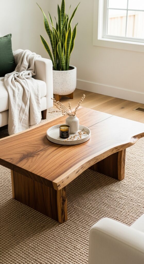 7. Organic Wood Coffee Table Centerpiece