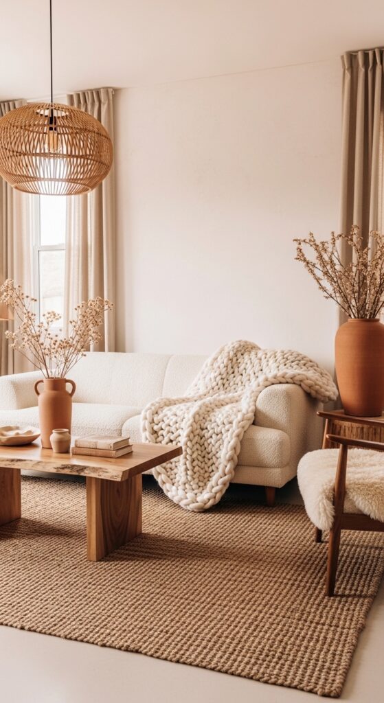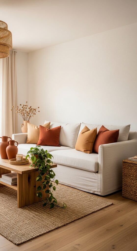 16. Terracotta and Cream Earthy Living Room