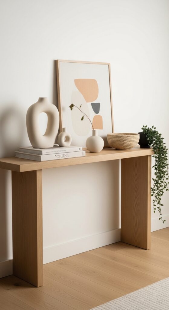 24. Organic Sculptural Decor on a Console Table