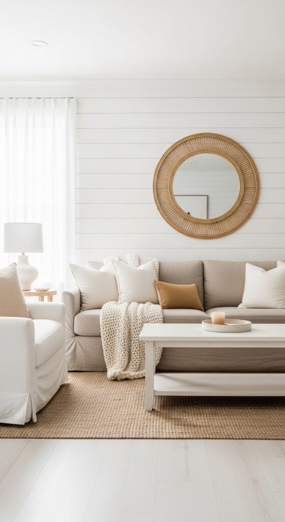 1. Clean-Lined Linen Sofa With Shiplap