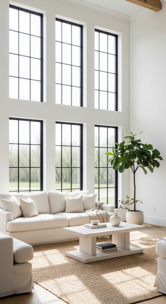 3. Dramatic Black Window Frames and White Walls