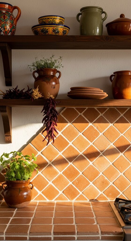 Vibe sentence: Warm as sunbaked earth and full of character — this backsplash carries the soul of a hacienda kitchen into any home.