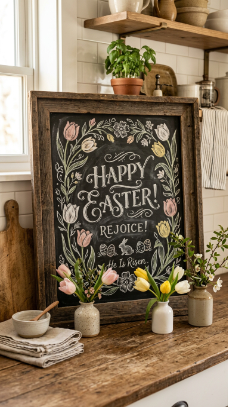 7. Easter Chalkboard Sign in the Kitchen