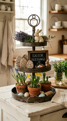 Vibe sentence: A tiered tray gives you permission to collect every tiny Easter thing you love into one intentional, composed display.