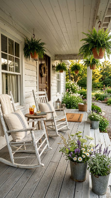 Nothing says farmhouse like a pair of wooden rockers and a slow afternoon breeze.