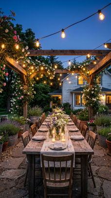 Warm string lights draped over a patio table turn a summer evening into pure magic.