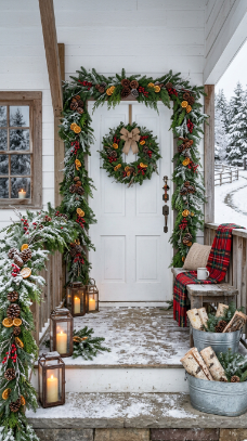 5. Winter Evergreen Garland Porch