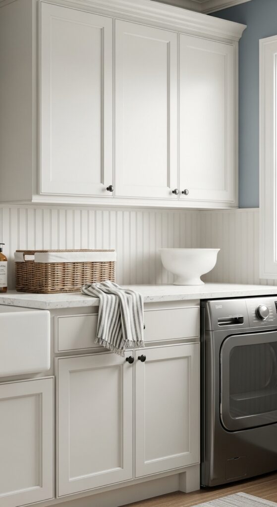 💡 Pre-primed beadboard sheets are one of the easiest weekend upgrades for a plain laundry room.