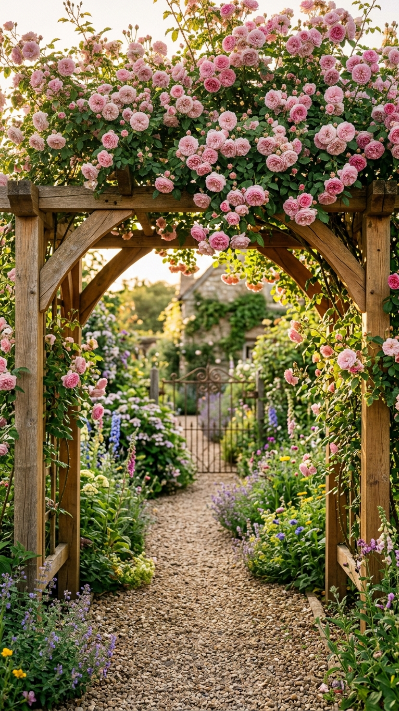 Vibe sentence: Walking beneath a rose-draped arbor is one of gardening’s greatest pleasures — it turns a simple path into a moment.
