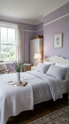 Soft lavender paired with cool grey creates a soothing, slightly Victorian dreamscape.