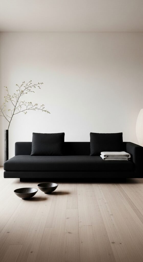 Low-Profile Japanese-Inspired Black Sofa Interior