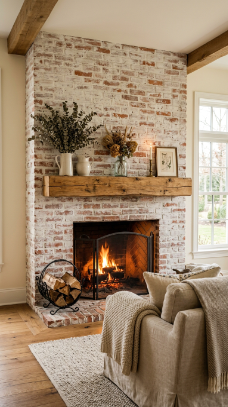 1. The Whitewashed Brick Fireplace