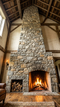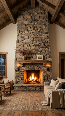 2. The Stacked Stone Floor-to-Ceiling Fireplace