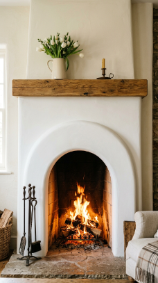 A gracefully arched firebox opening adds old-world architectural character to any farmhouse fireplace.
