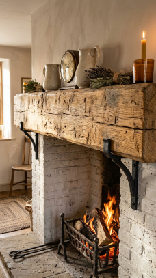 4. The Reclaimed Timber Beam Mantel