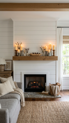 2. Shiplap Mantle with Pillar Candles